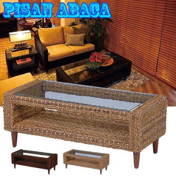 テーブル アジアン センターテーブル アジアン家具 夏 ガラス天板 アバカ素材