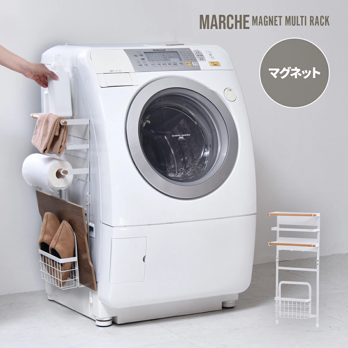 マグネットマルチ収納ラック ランドリー収納 シンプルスタイル ナチュラル 角型 スチール おしゃれ マグネットマルチ収納ラック