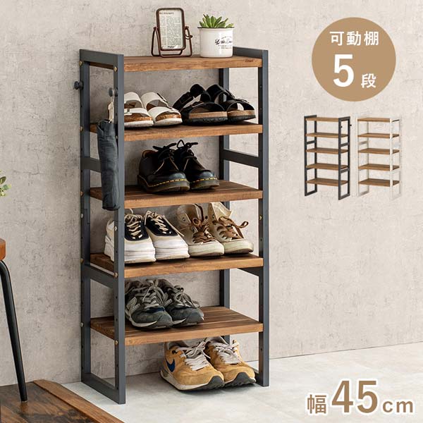 5段 オープンラック 木製 シューズラック 靴棚 スリム 玄関収納棚 おしゃれ