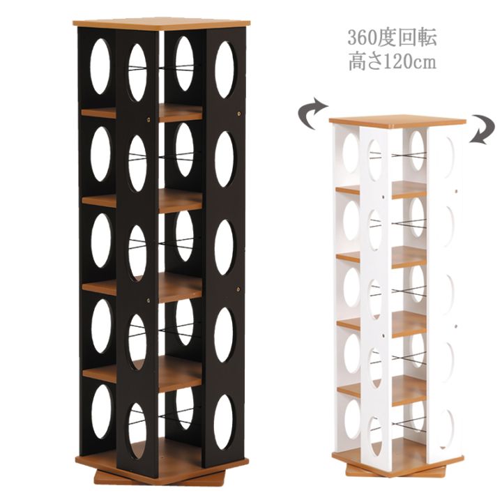 本棚 回転式 大容量 角型 3段 省スペース 収納 完成品 無塗装
