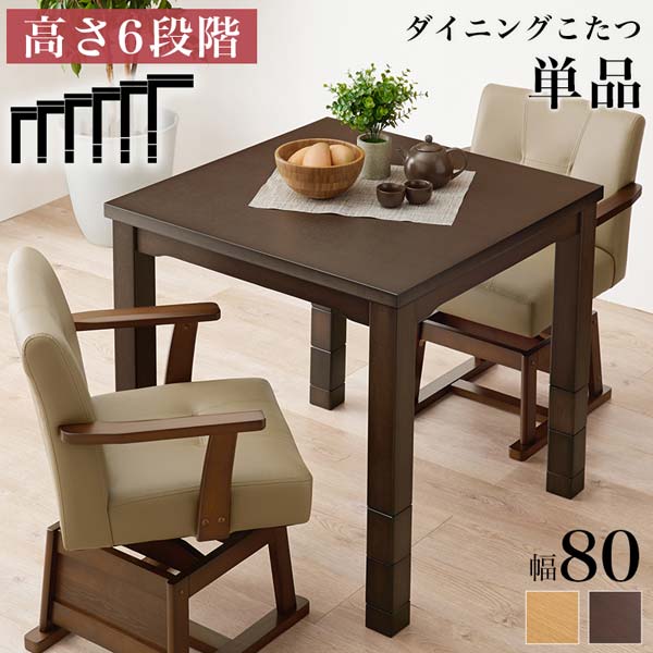 ダイニングこたつ テーブル ハイタイプ 正方形 80cm 単品 高さ6段