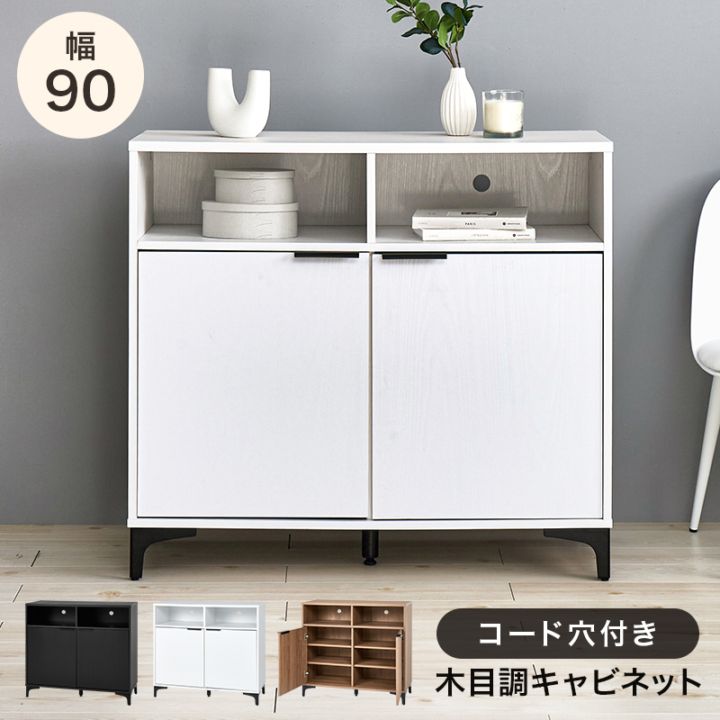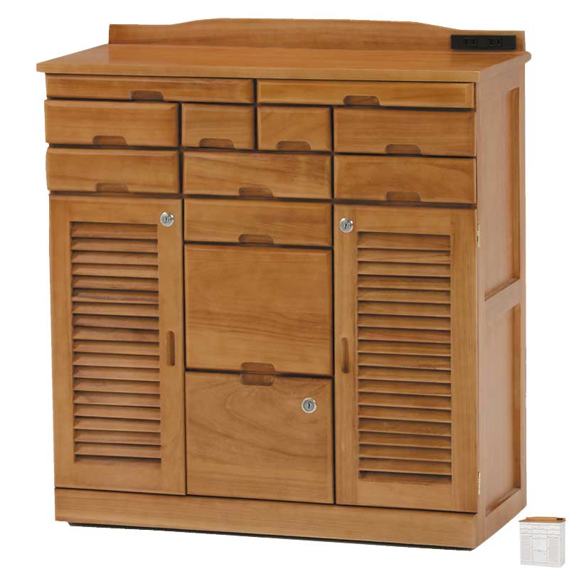 サイドボード キャビネット ファックス台 幅93cm 引き出し 電話台 鍵付き おしゃれ