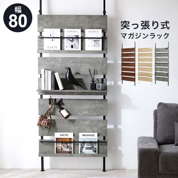 突っ張りマガジンラック 突っ張りラック 棚 おしゃれ 幅80cm